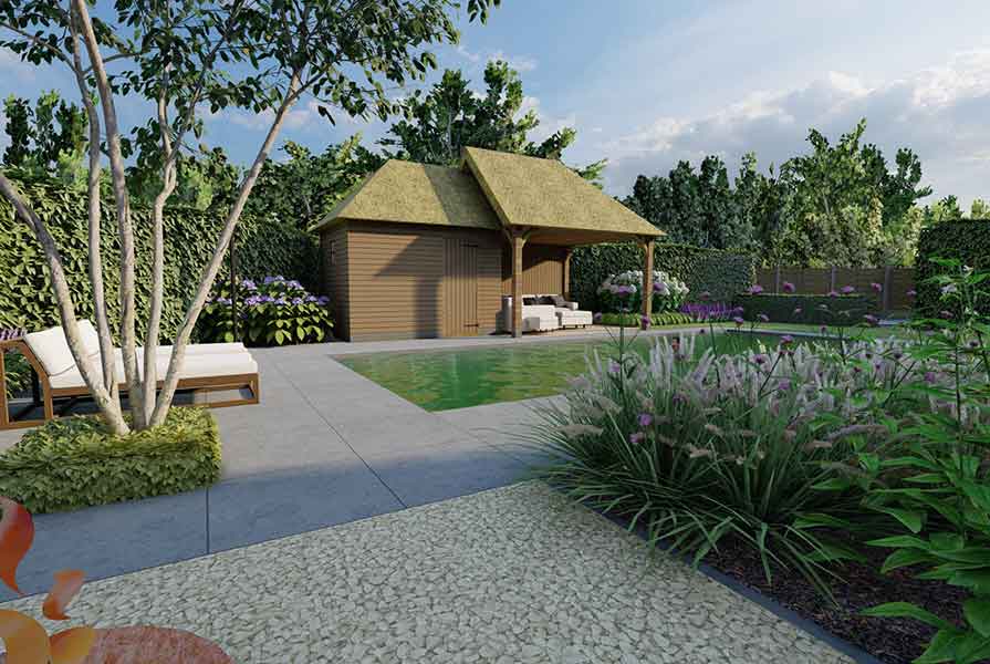 Het is mogelijk om een compleet nieuwe tuin met zwembad en poolhouse te ontwerpen, een poolhouse en zwembad in een bestaande tuin te plaatsen of een poolhouse te ontwerpen voor een bestaande tuin met zwembad.